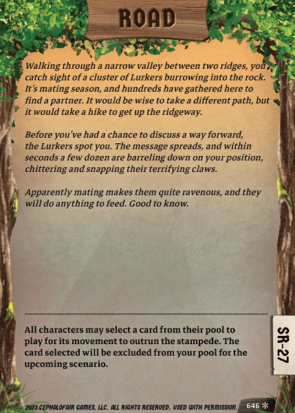 | 1499 | Glittering Distraction | Whenever there are three or more revealed loot tokens on the map at the end of any round, all characters gain . If this scenario has no loot deck, draw a new challenge and place this card on the bottom of the deck. |