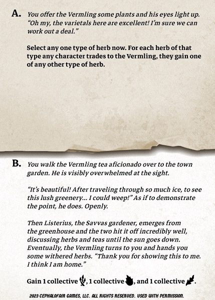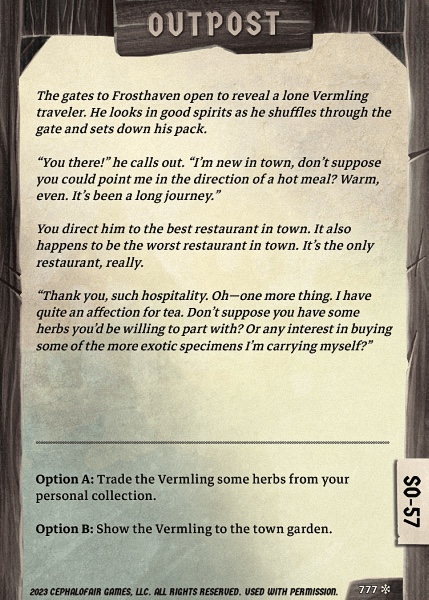 - | Dawdler | 8 | 12 | 4 | 156 | 4 | 7 | 7 | 28 | 10 | -5 | 112 | 2 | 1 | 1-1 | 1 | 2 | 3 | 2 | Gain 1 checkmark from SR-33. SO-57: Trade for . Pay 5 gold for Enhancer. | ||||||||||||||